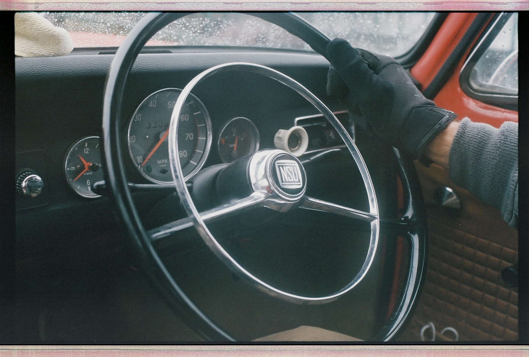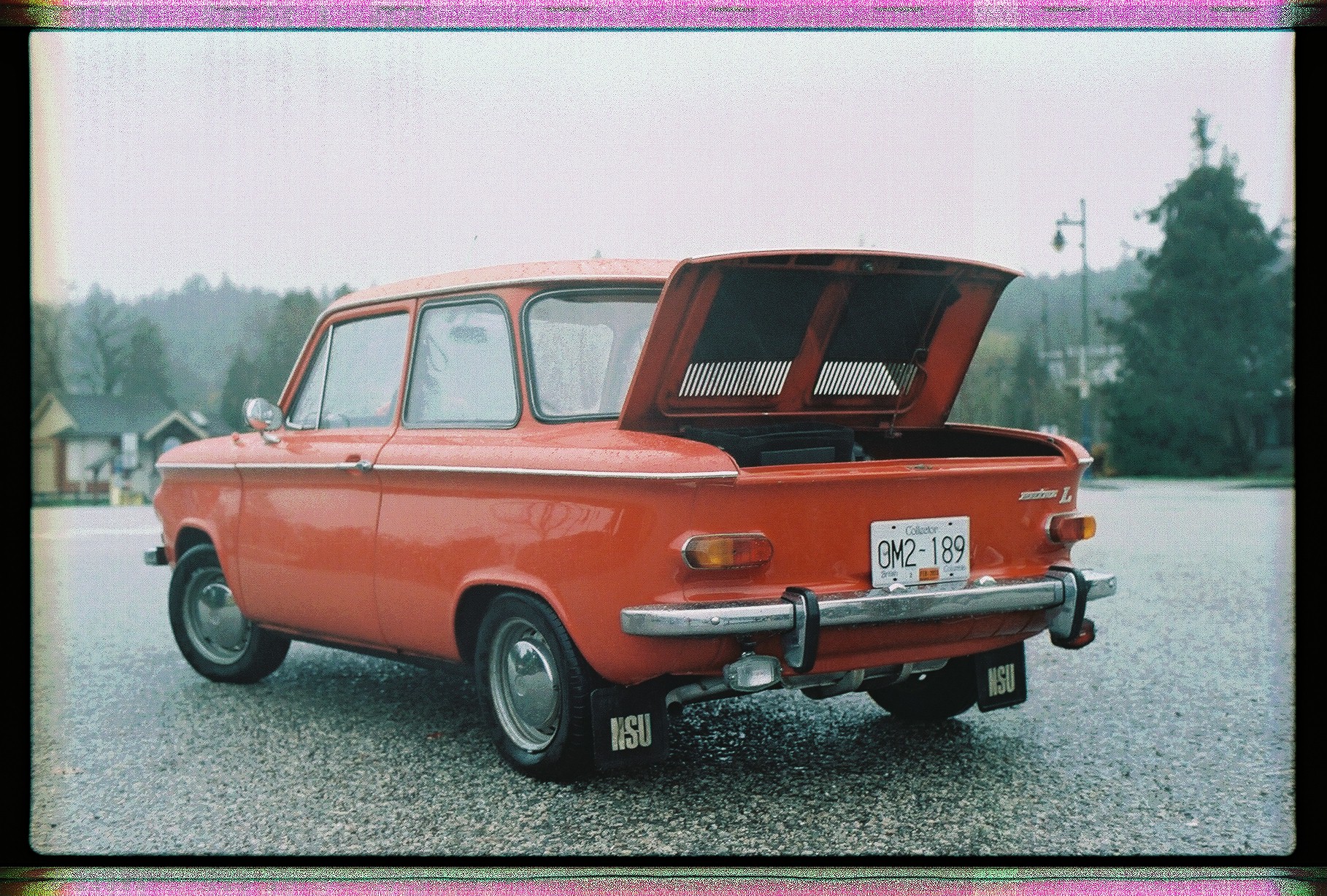 Affectionately named Stella, this is Robert's 1971 NSU Prinz 4L. In fact, this is Robert's second NSU Prinz 4L, as his first was tipped onto its side by some unfriendly individuals back home in Britain. Anyhow, Robert has treasured this little vehicle for the past 26 years, having found it through the NSU Owners Club of Great Britain. When Robert first got her, Stella was many shades of red, but since then, she has been repainted, her seats have been reupholstered, and her engine has been rebuilt. After years of motoring around in the UK, Robert packed up Stella, along with the rest of his belongings, into a shipping container (you could probably fit five Prinzes into one of those) and set sail for Vancouver. Now cruising along Canada’s open roads, this spunky NSU is finally given a chance to open up its wings where Robert and Stella manage a few hundred kilometres of driving annually. Back in Britain, however, Robert managed to log 2-3 thousand miles annually with a common drive being London to Yeovil, turning a 125-mile trip into a three-and-a-half hour experience through the use of A and B roads. So what’s it like to drive? According to Robert, she is very light, agile, and well-balanced. Equipped with a rear-mounted fiery 600cc two-cylinder engine, Stella is not as rear weight-biased as with many other rear-engined cars making the Prinz noted for good handling.